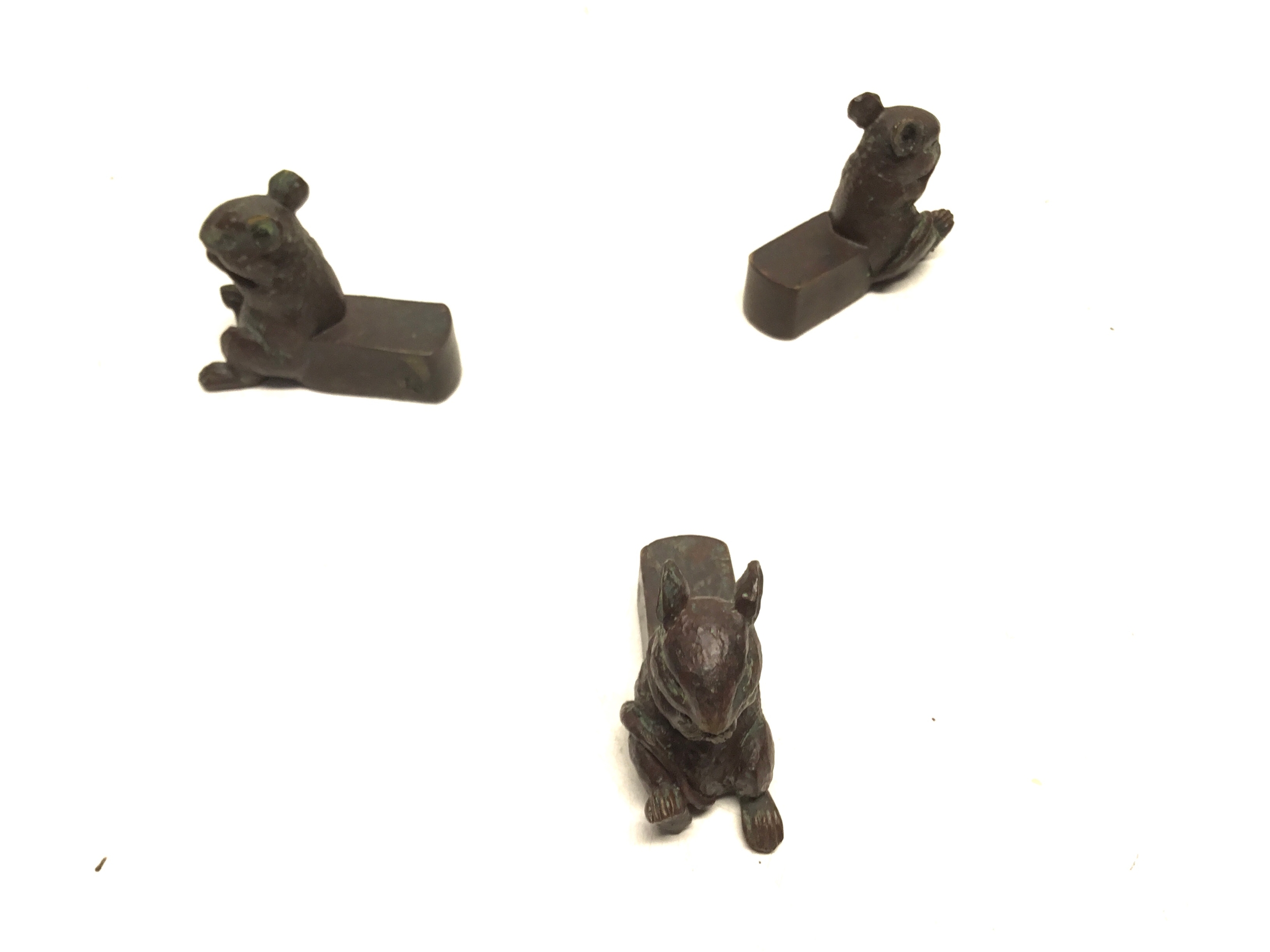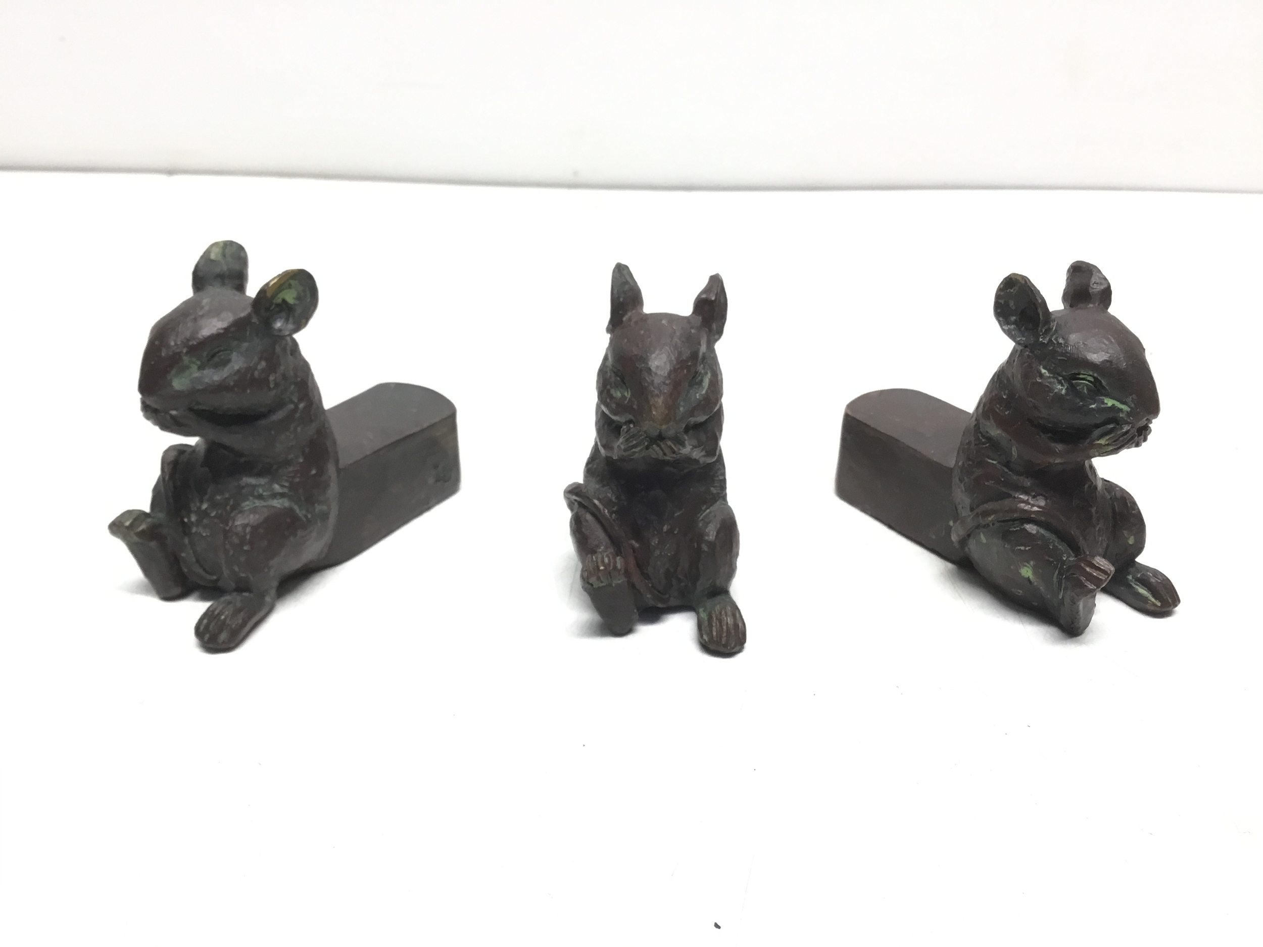 Set of three clay bronze effect plant pot stands