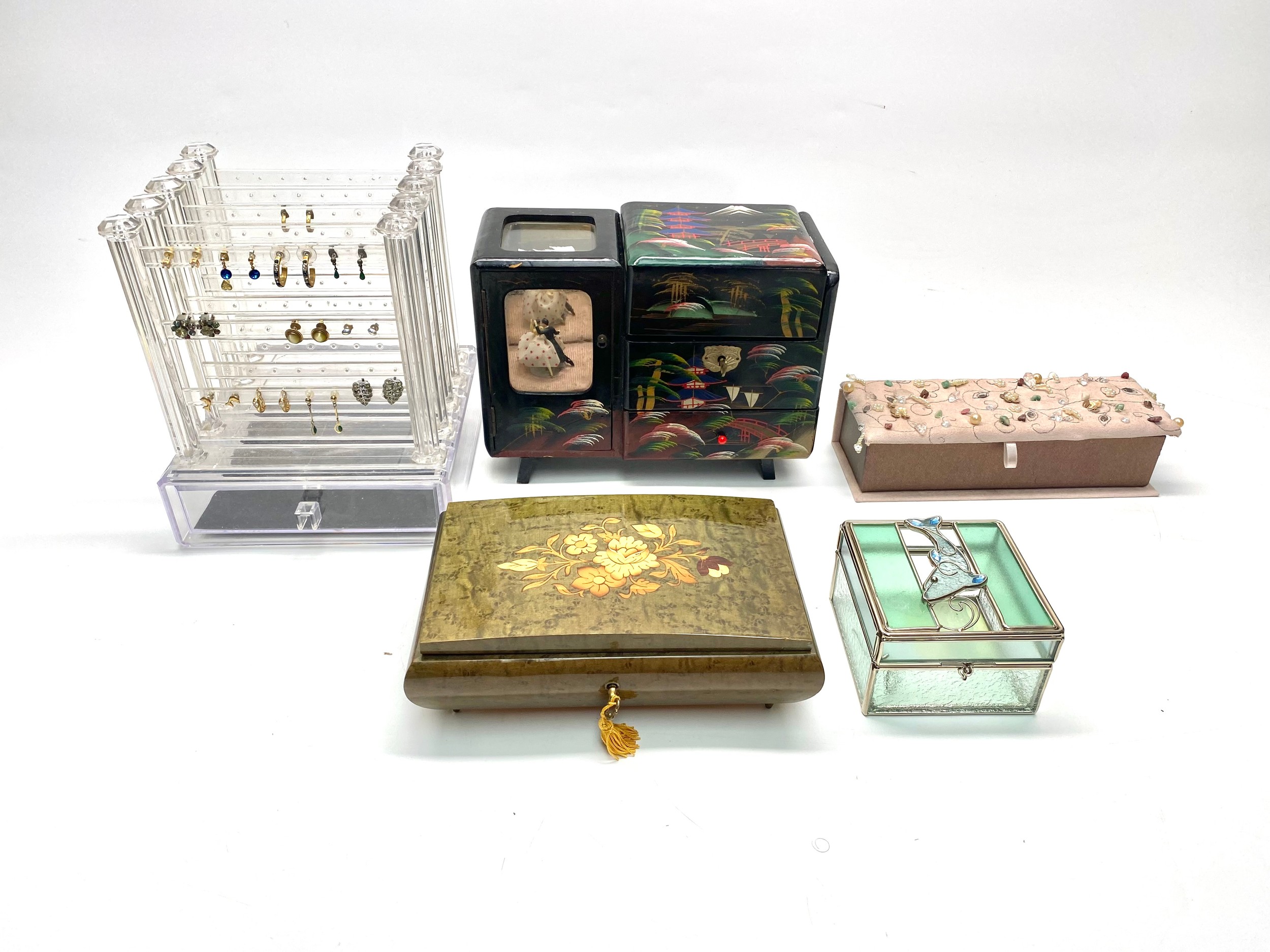 Japanese Hand-painted Musical Jewellery, musical box from Capri, earring stand and other jewellery boxes.