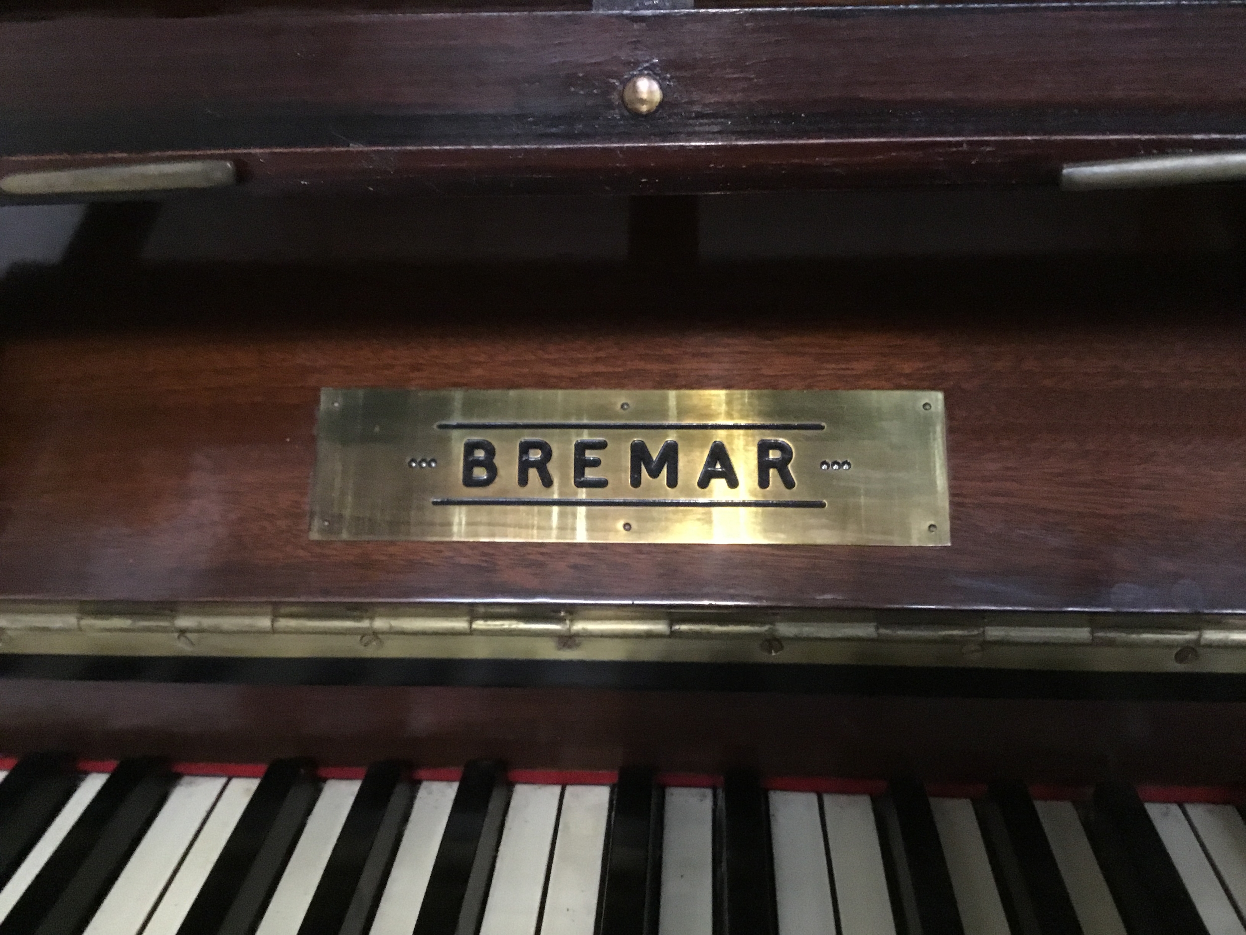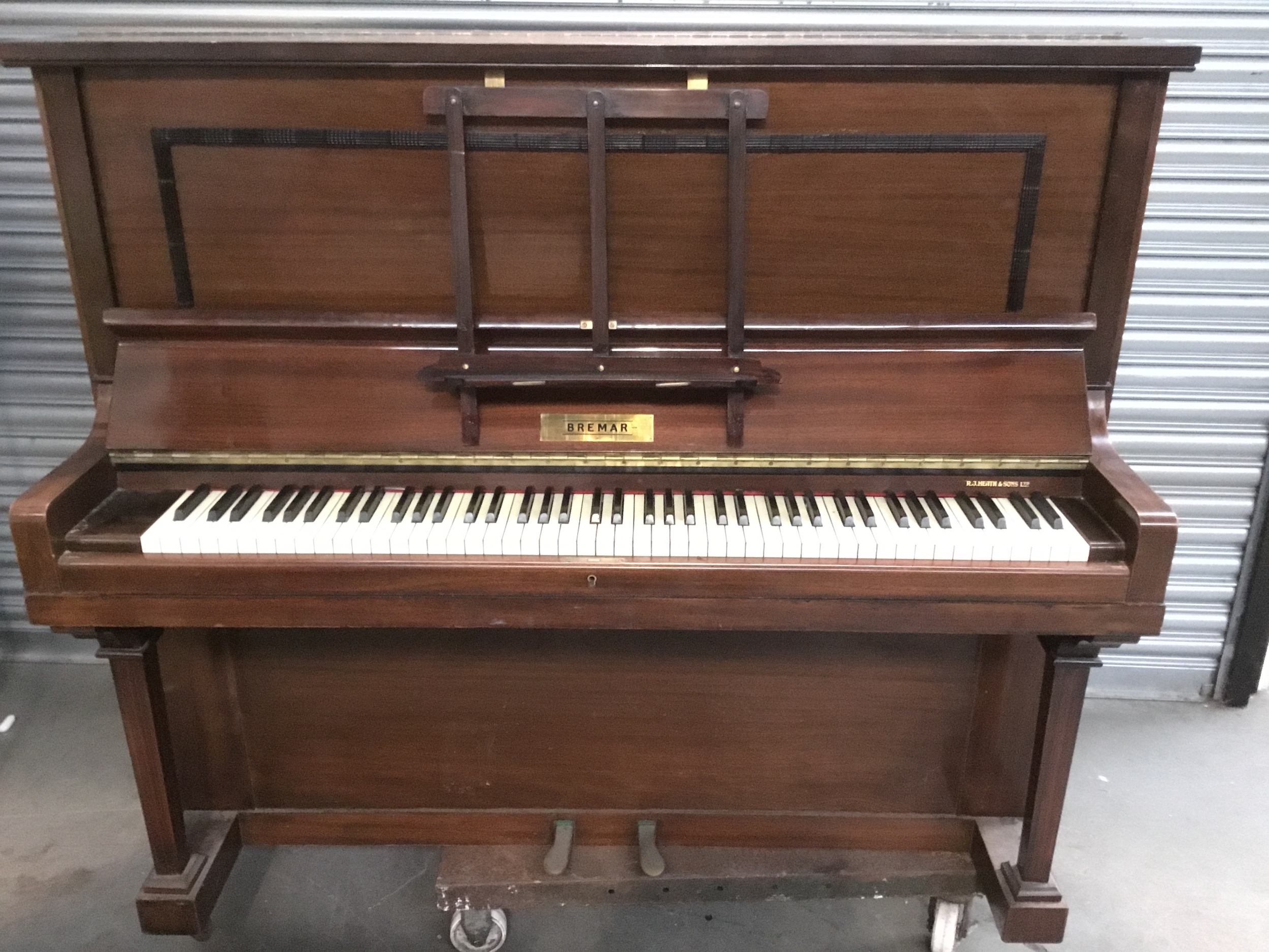 Vintage Bremar upright piano from R J Heath and Sons Ltd finished in mahogany