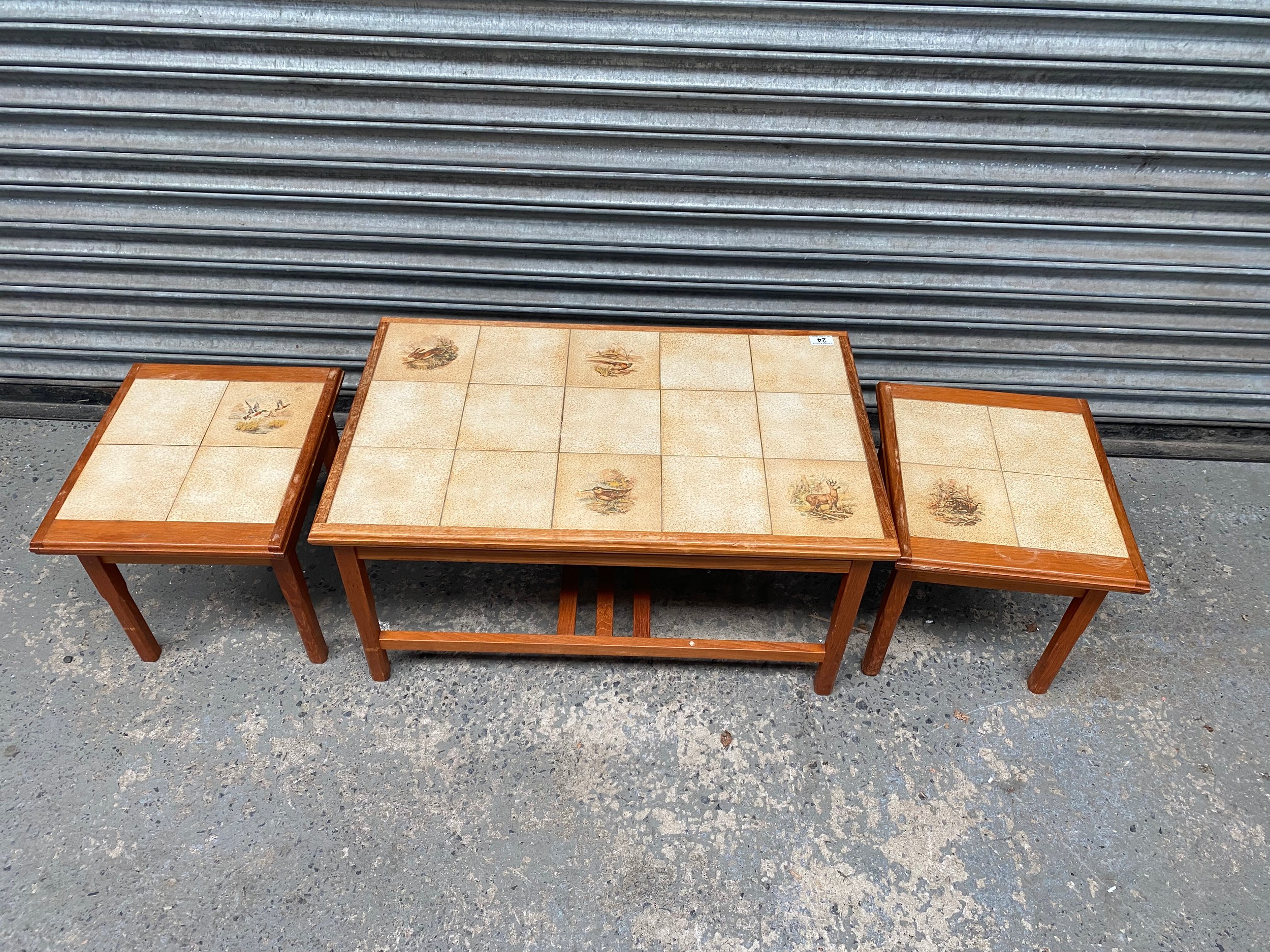 Danish Coffee Side Tables with Teak Frames and Tiled Tops.
