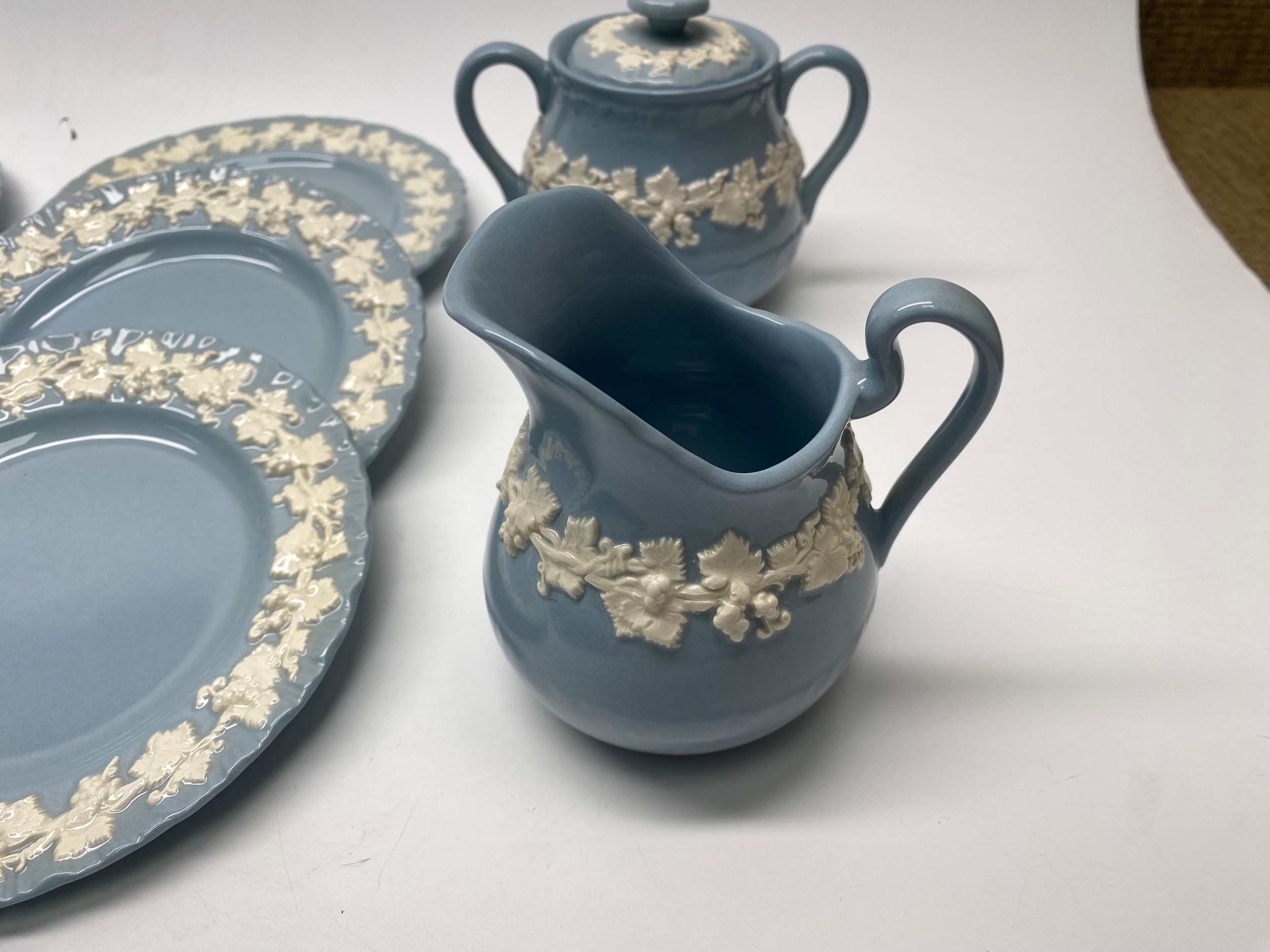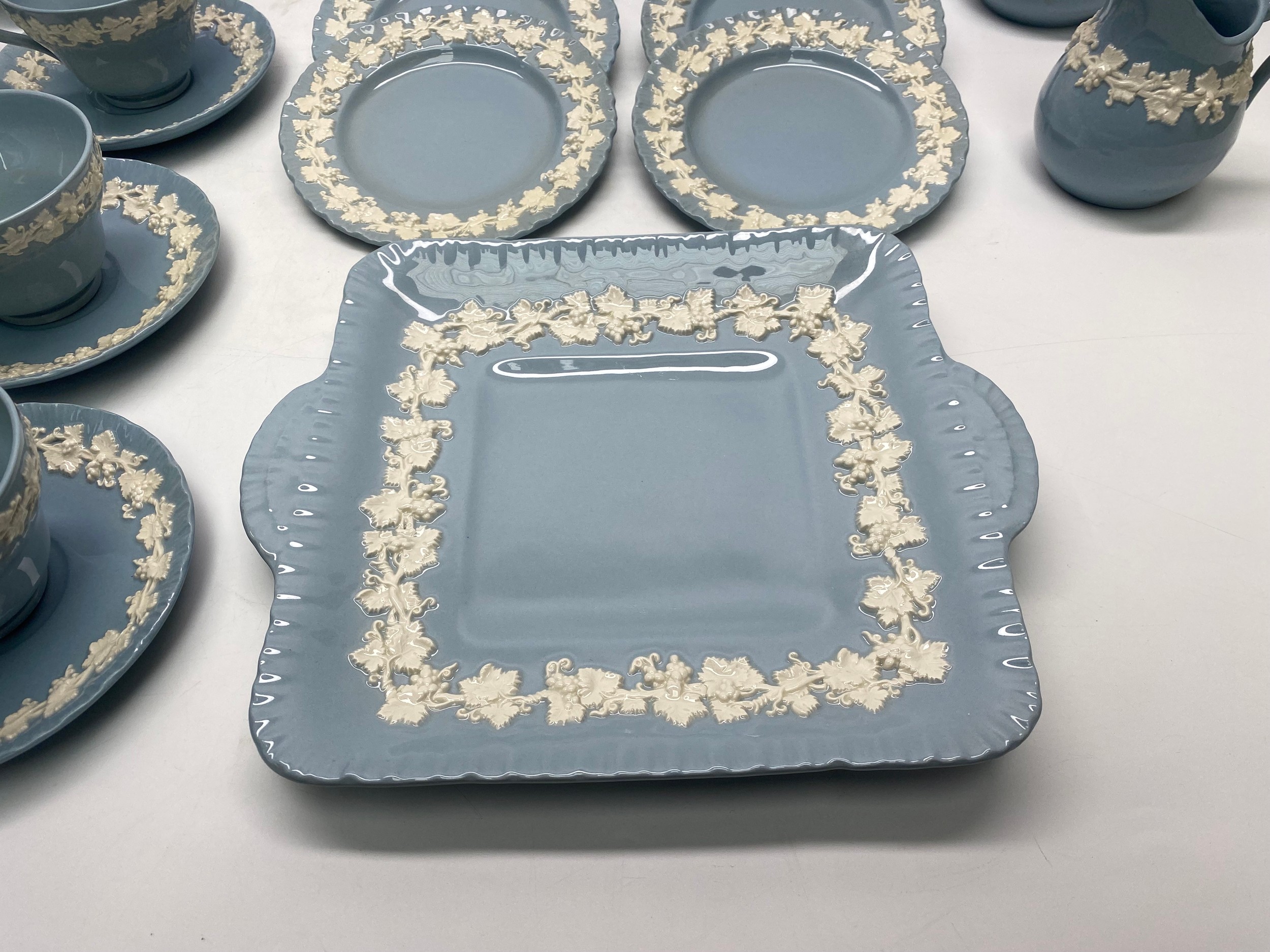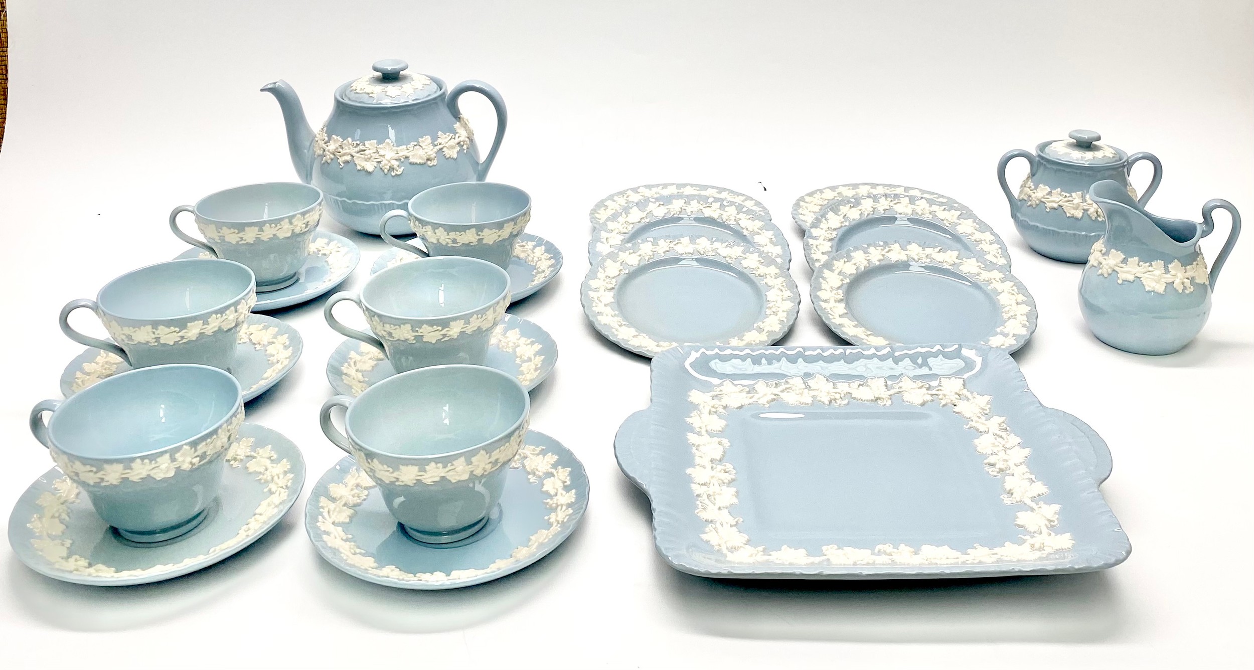 Gorgeous Wedgewood Of Etruria & Barlaston Embossed Queen's Ware Tea Service Set.
