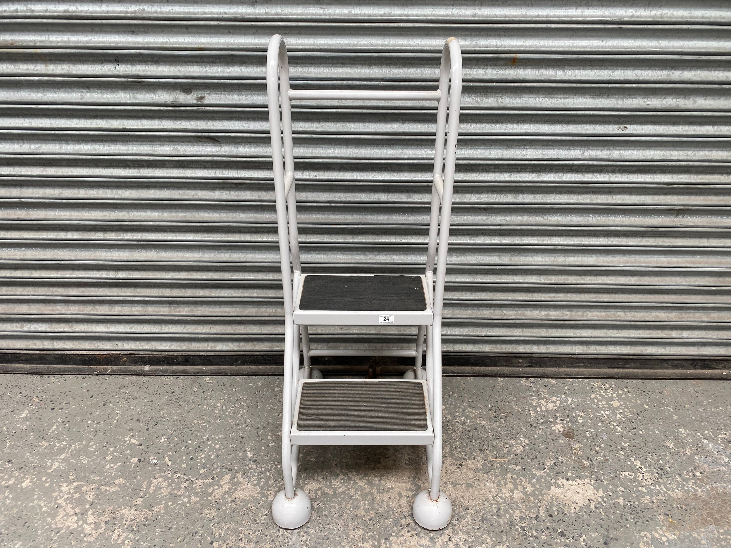 two-step ladder with a handrail with non-slip surface for secure footing.