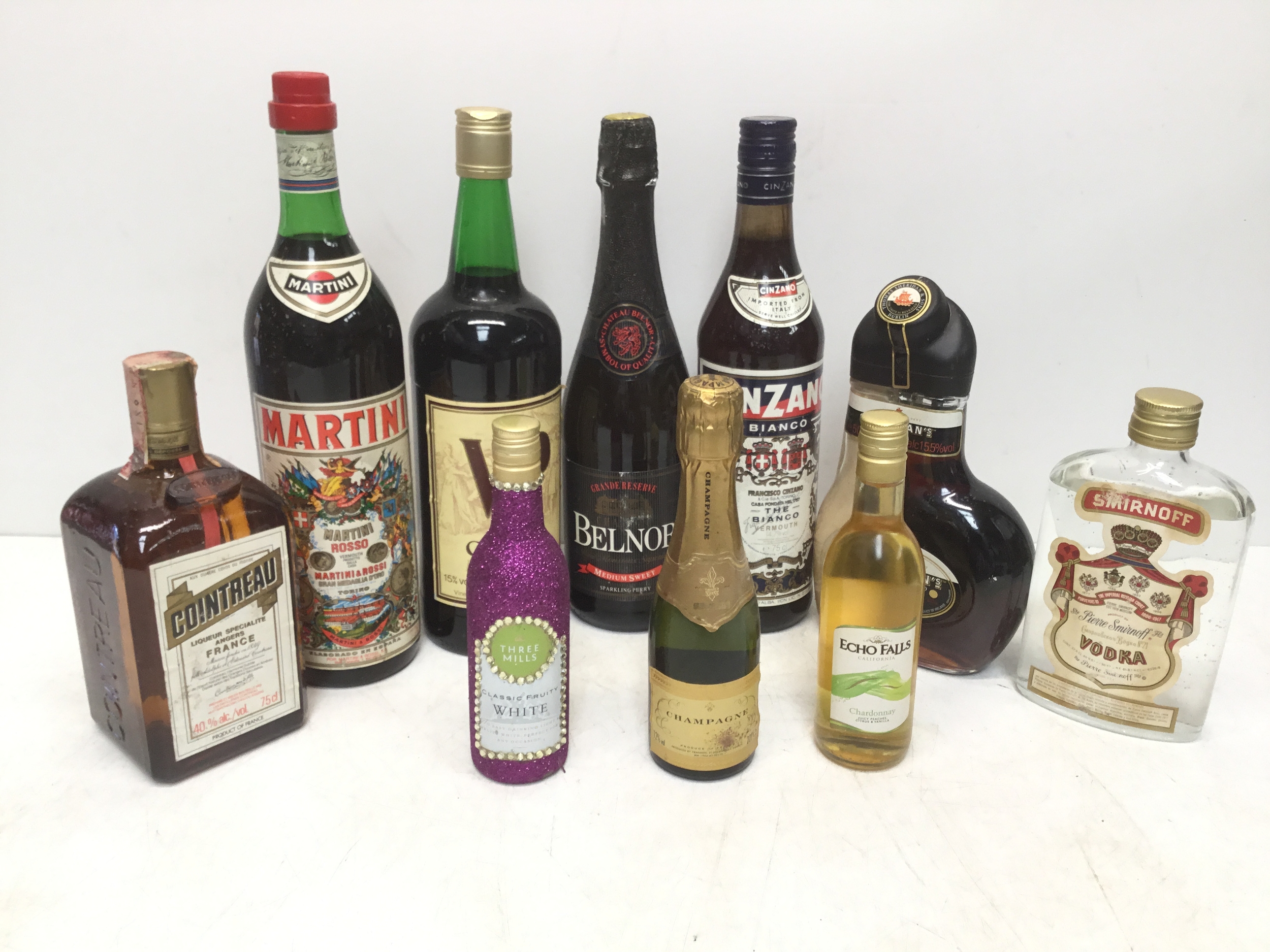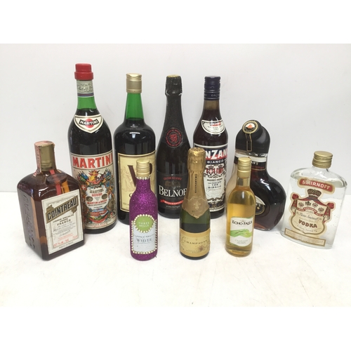 A quantity of alcohol including Cointreau, Cinzano and Smirnoff vodka