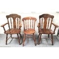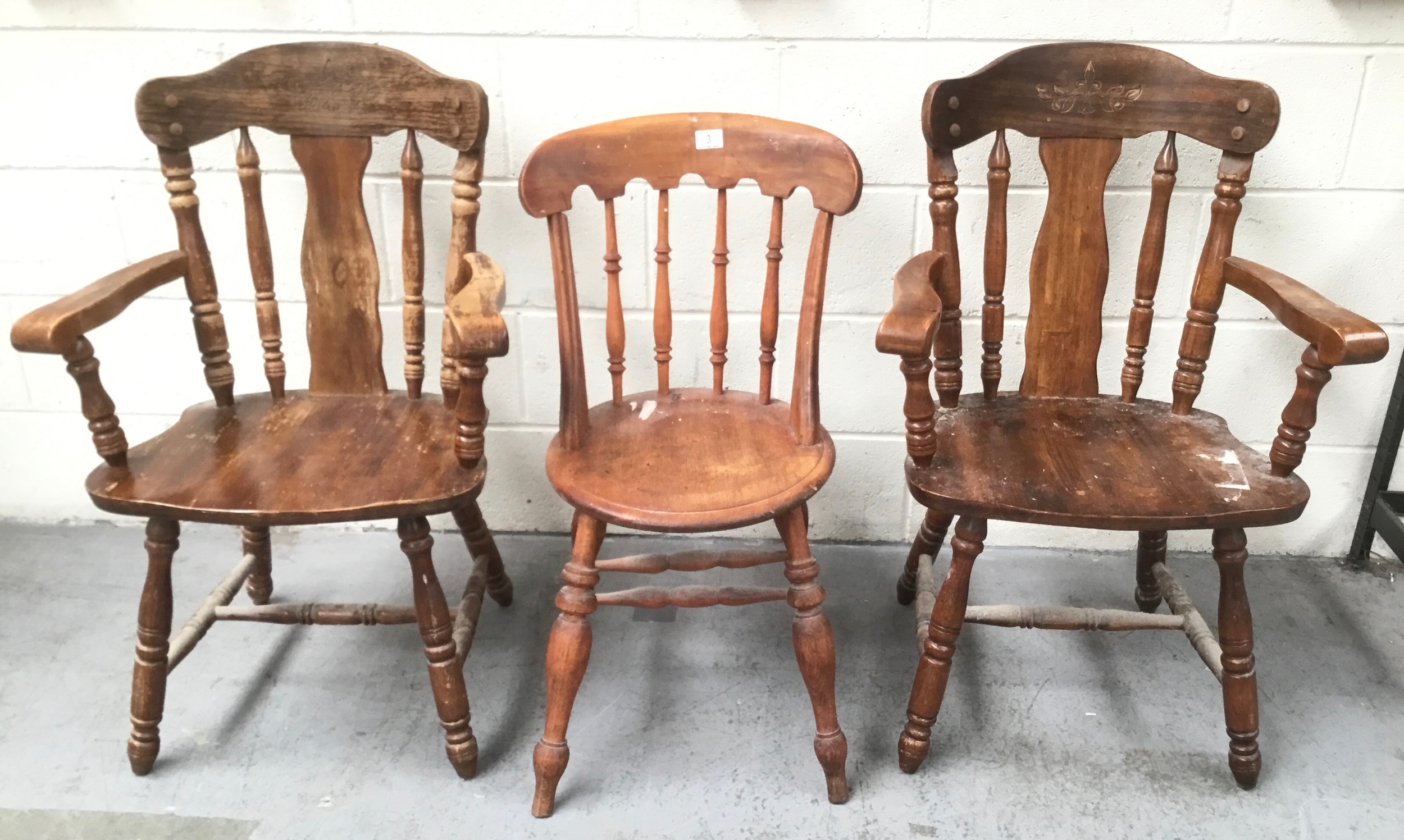 Three vintage farmhouse chairs including two carvers