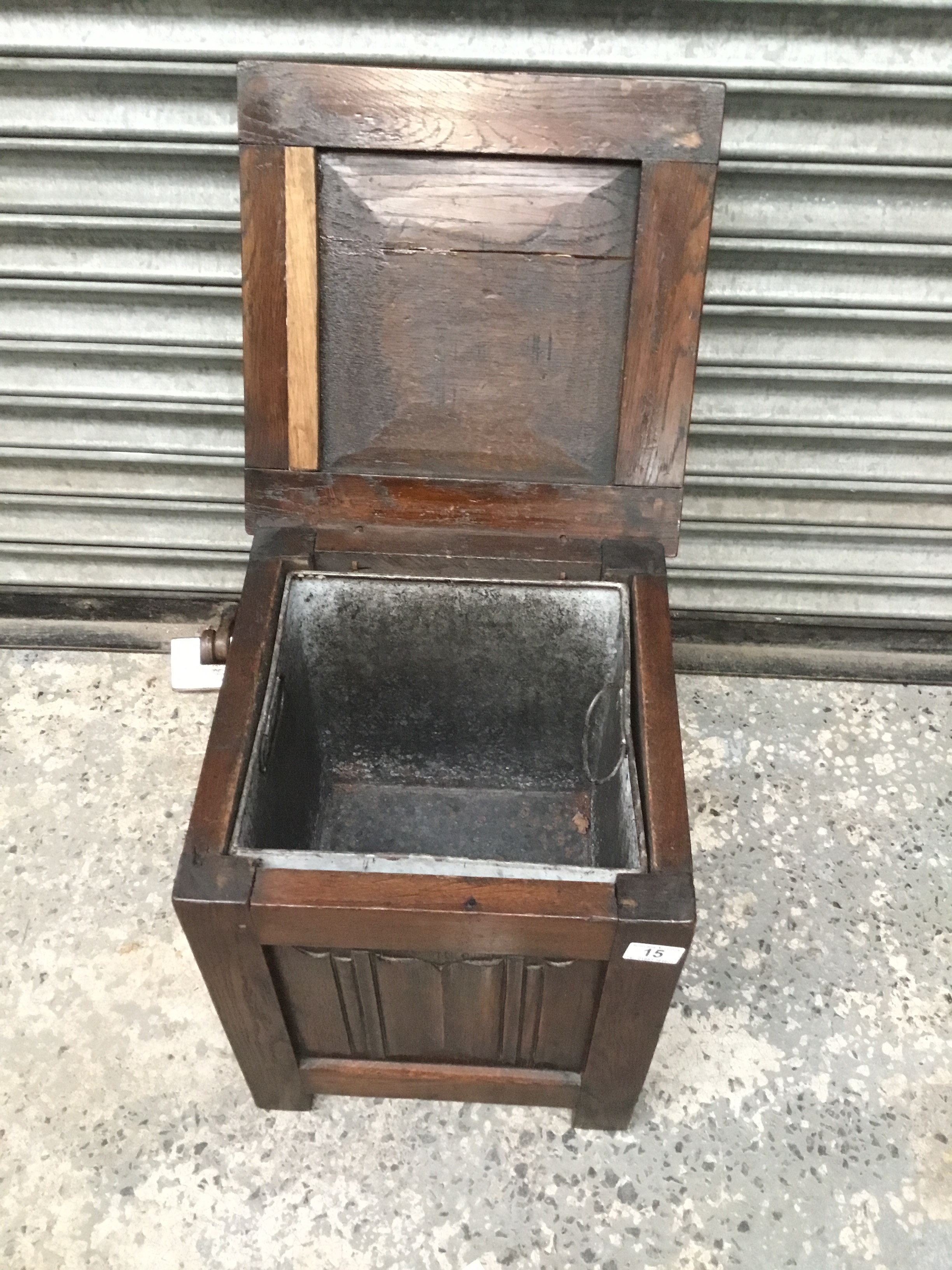 Arts and crafts oak framed coal box 38cm x 46cm