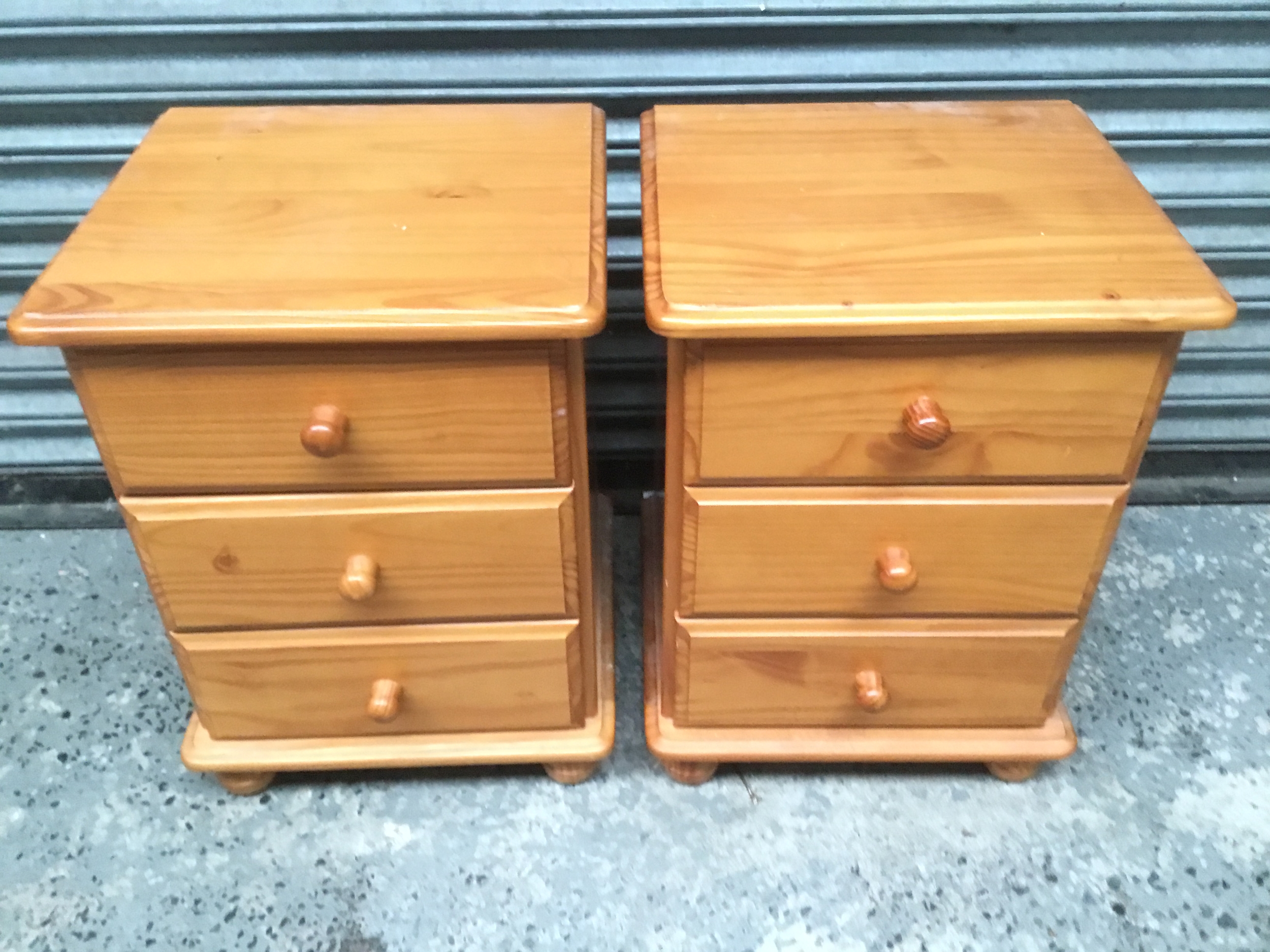 A pair of pine bedside units