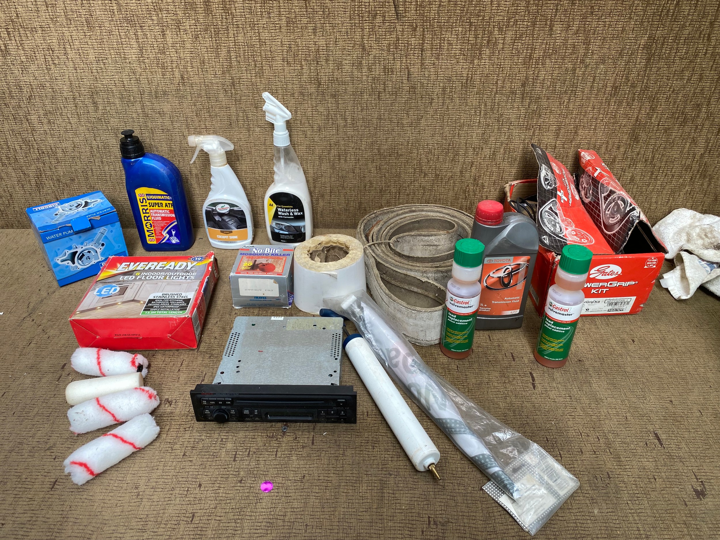 mixed items, including cleaning products and car items.