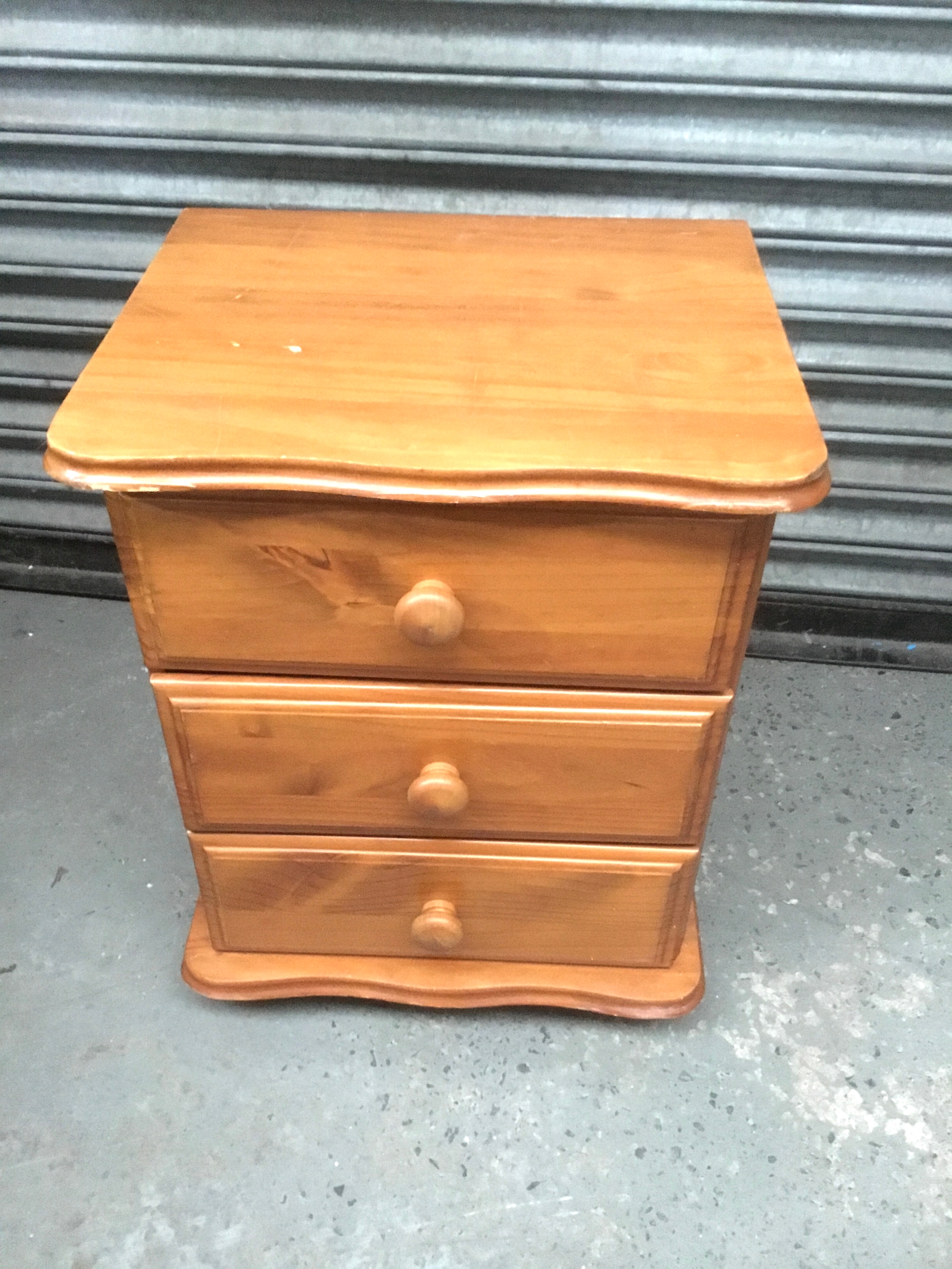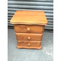 Pine three drawer bedside unit