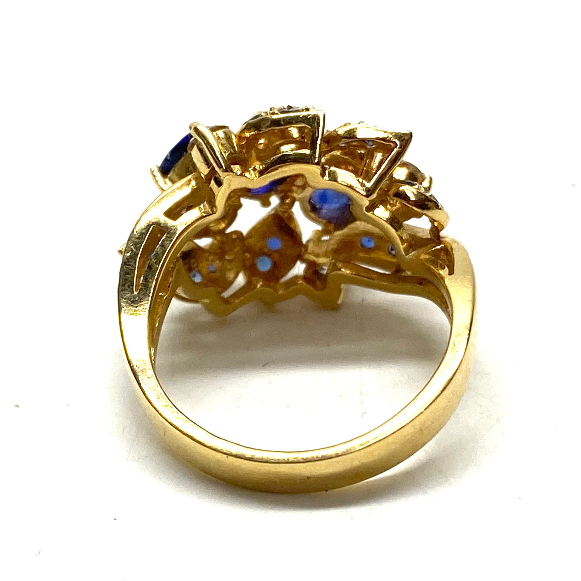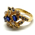Stunning 18ct gold diamond and sapphire cluster cocktail ring Size M 7.4g.