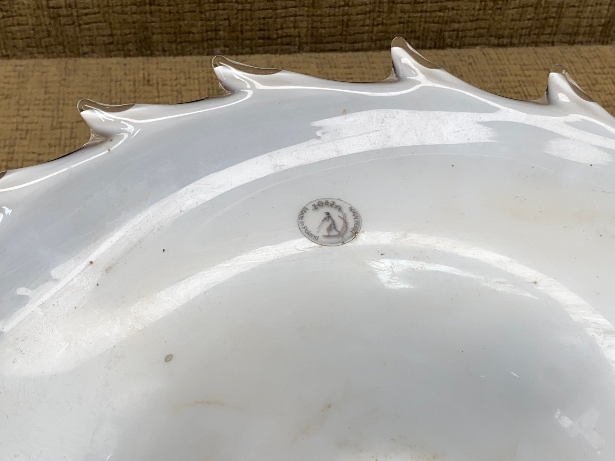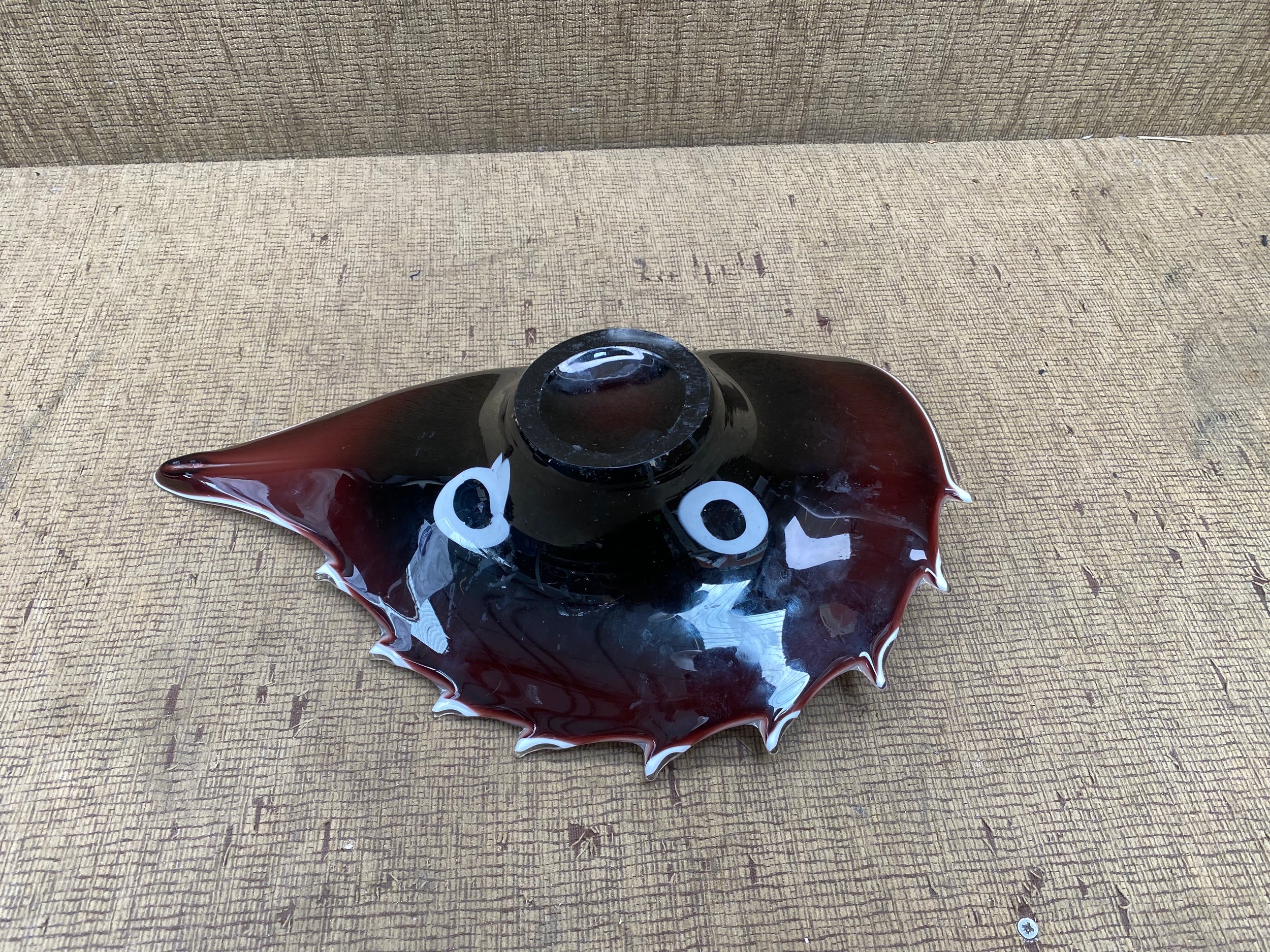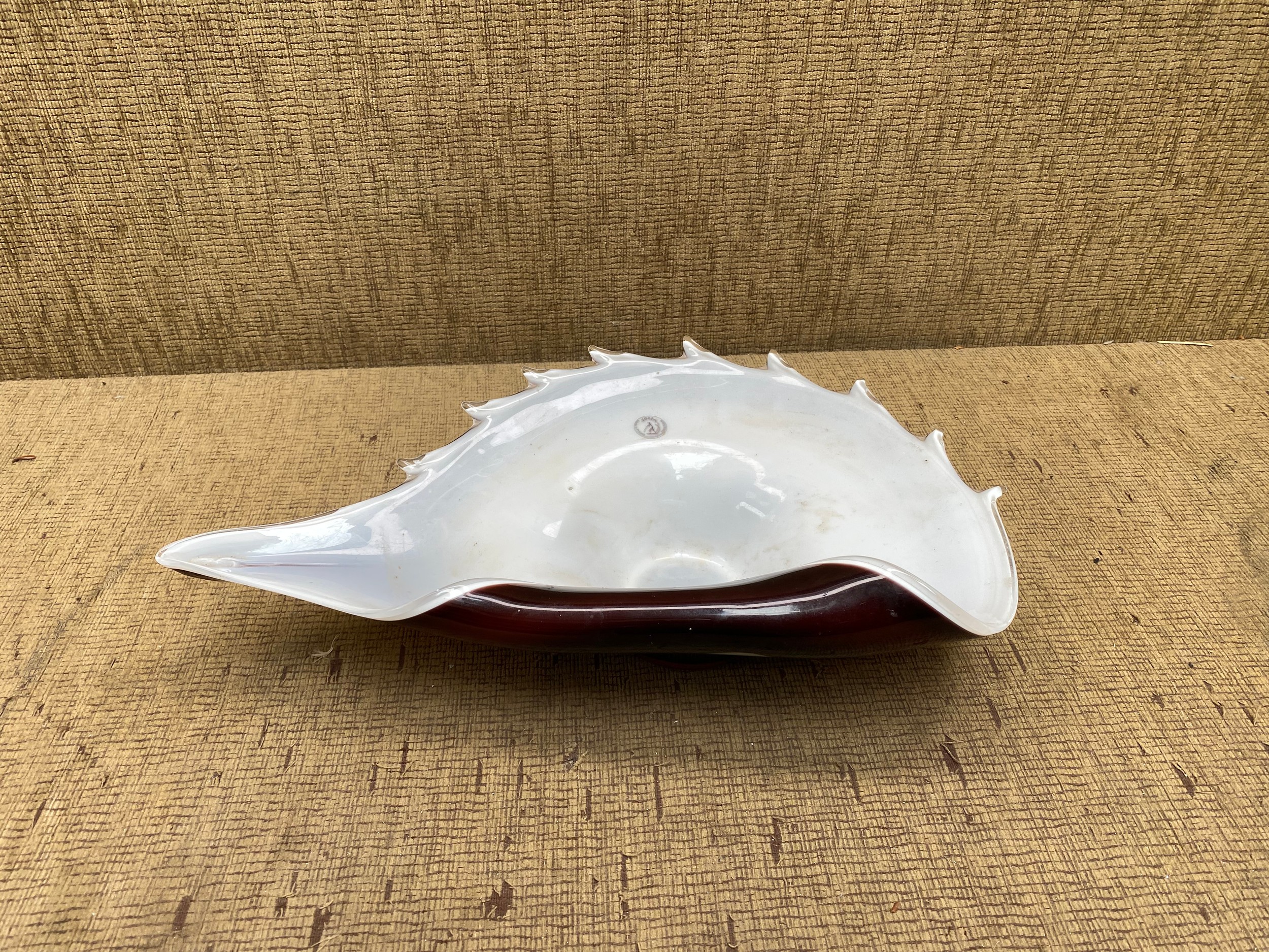 Hand-blown Zorza Polish art glass shell bowl, measuring 44 cm.