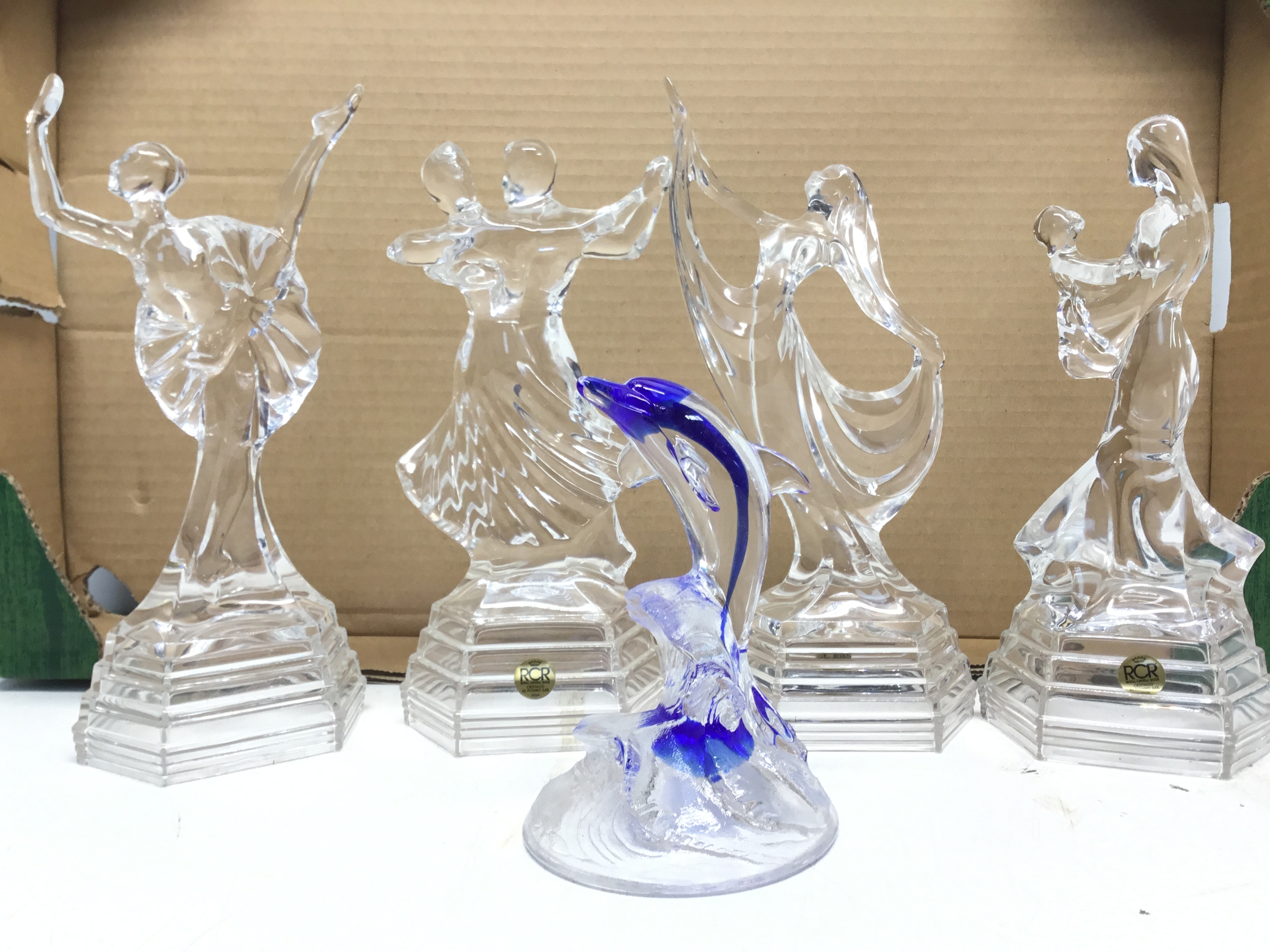 Four Royal Crystal Rock figurines and a Crystal D Arque dolphin