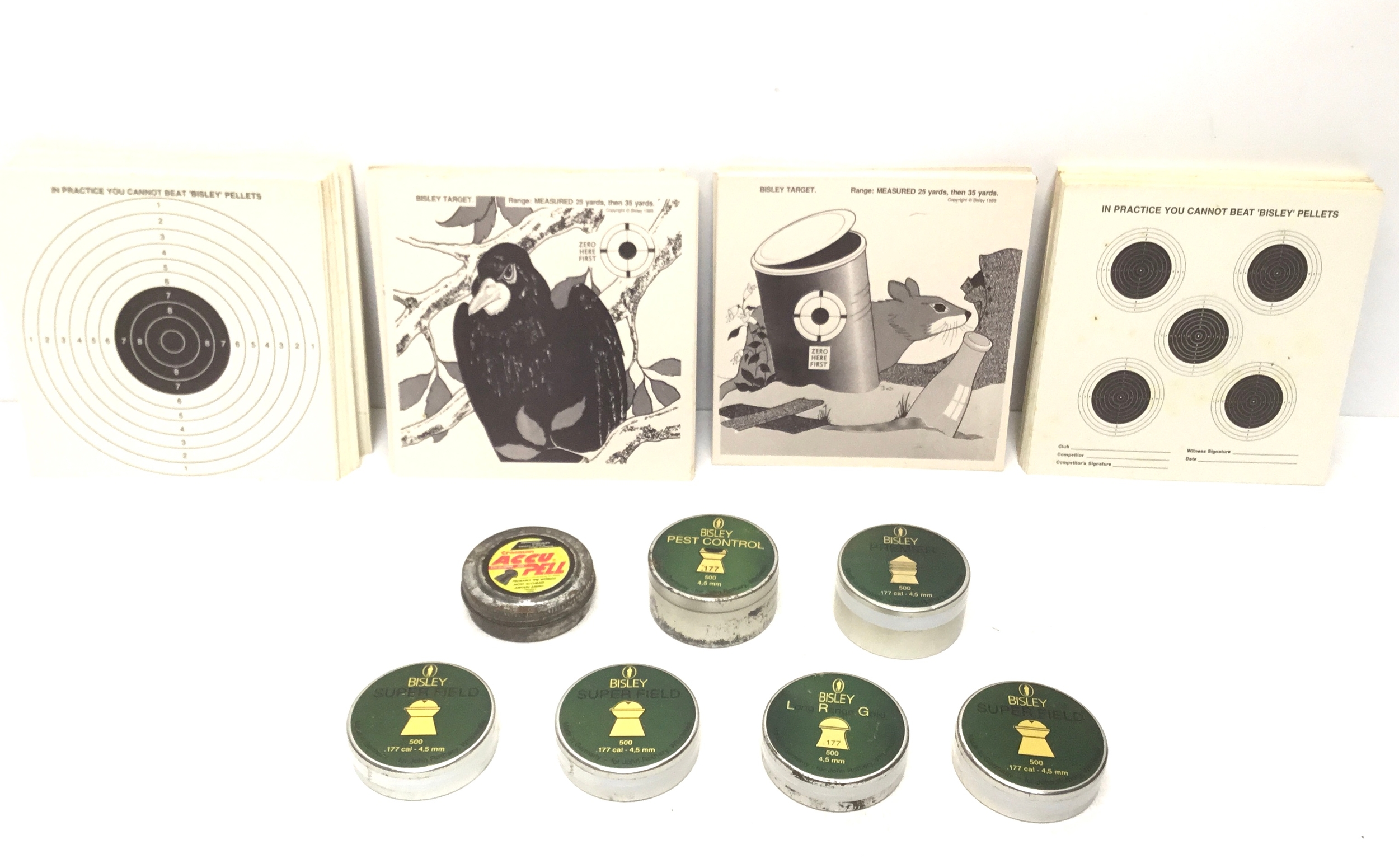 A collection of Bisley .177 pellets and targets. Over 18s only: ID required where applicable. Shipping is on a signed-for basis for over 18s.