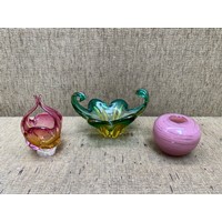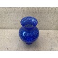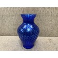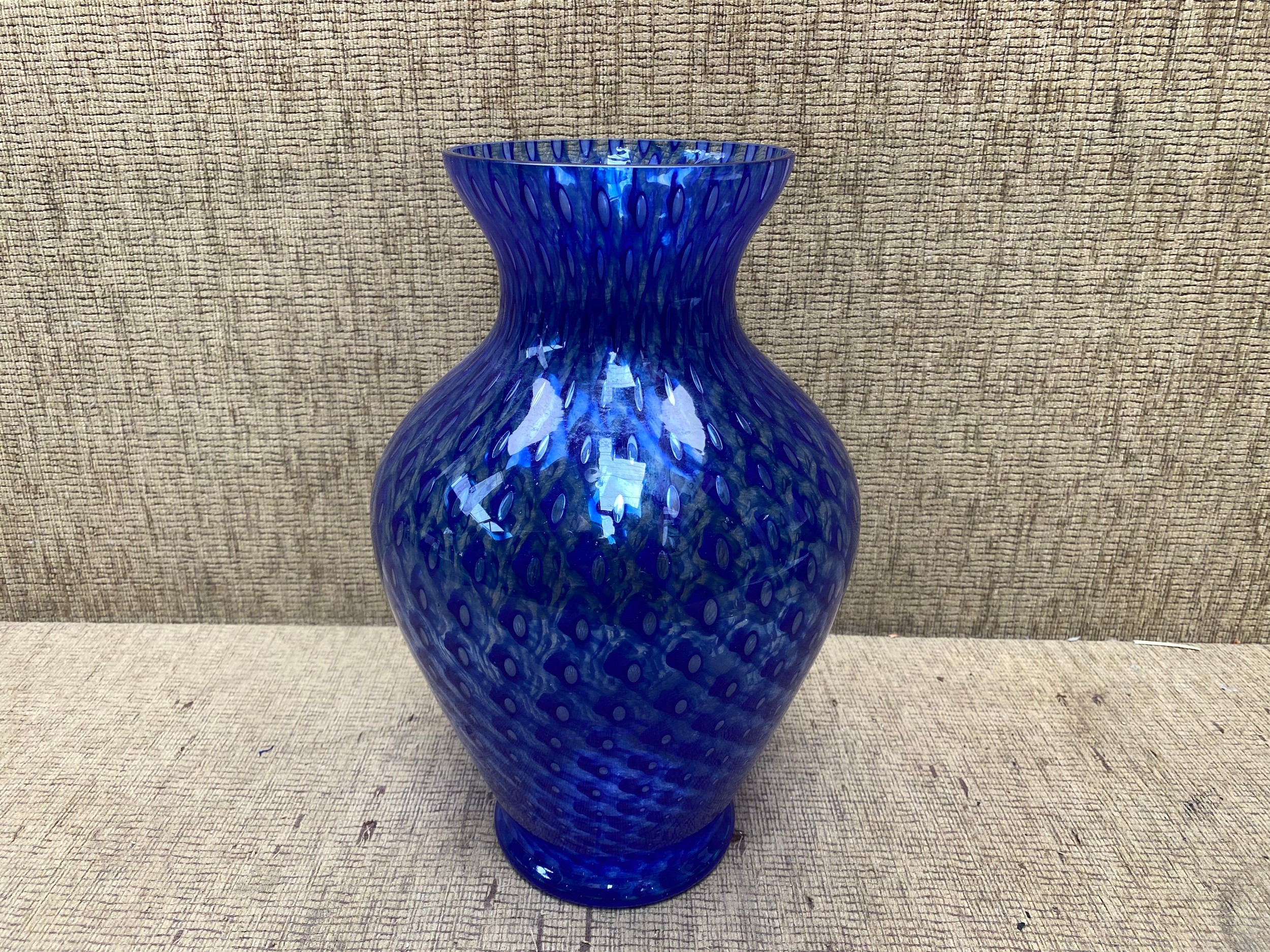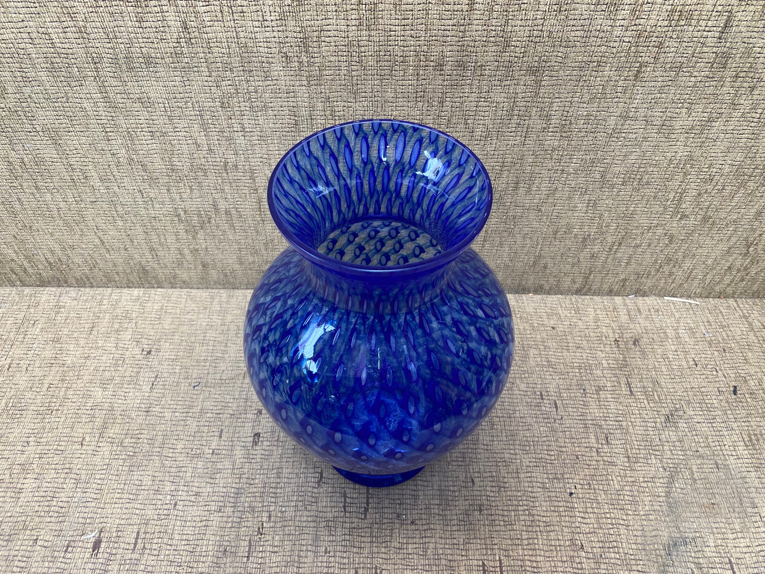 Stunning Hand-Blown blue art glass vase with air bubbles 34cm.