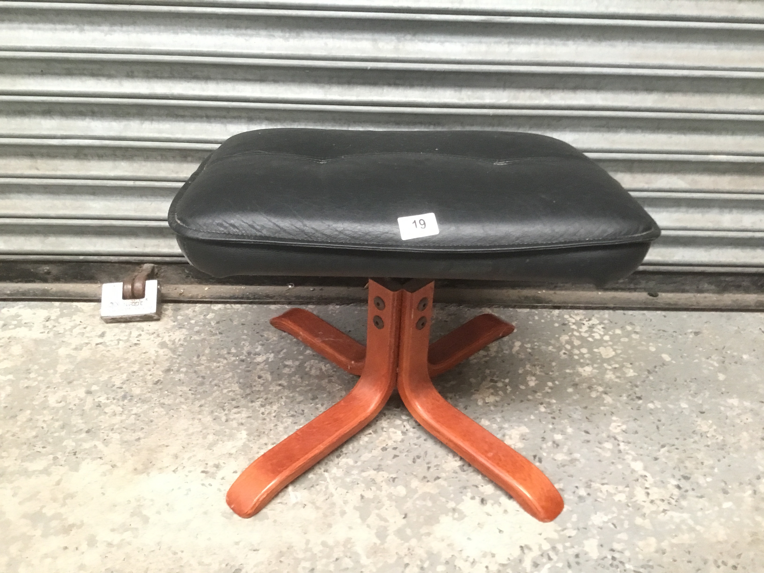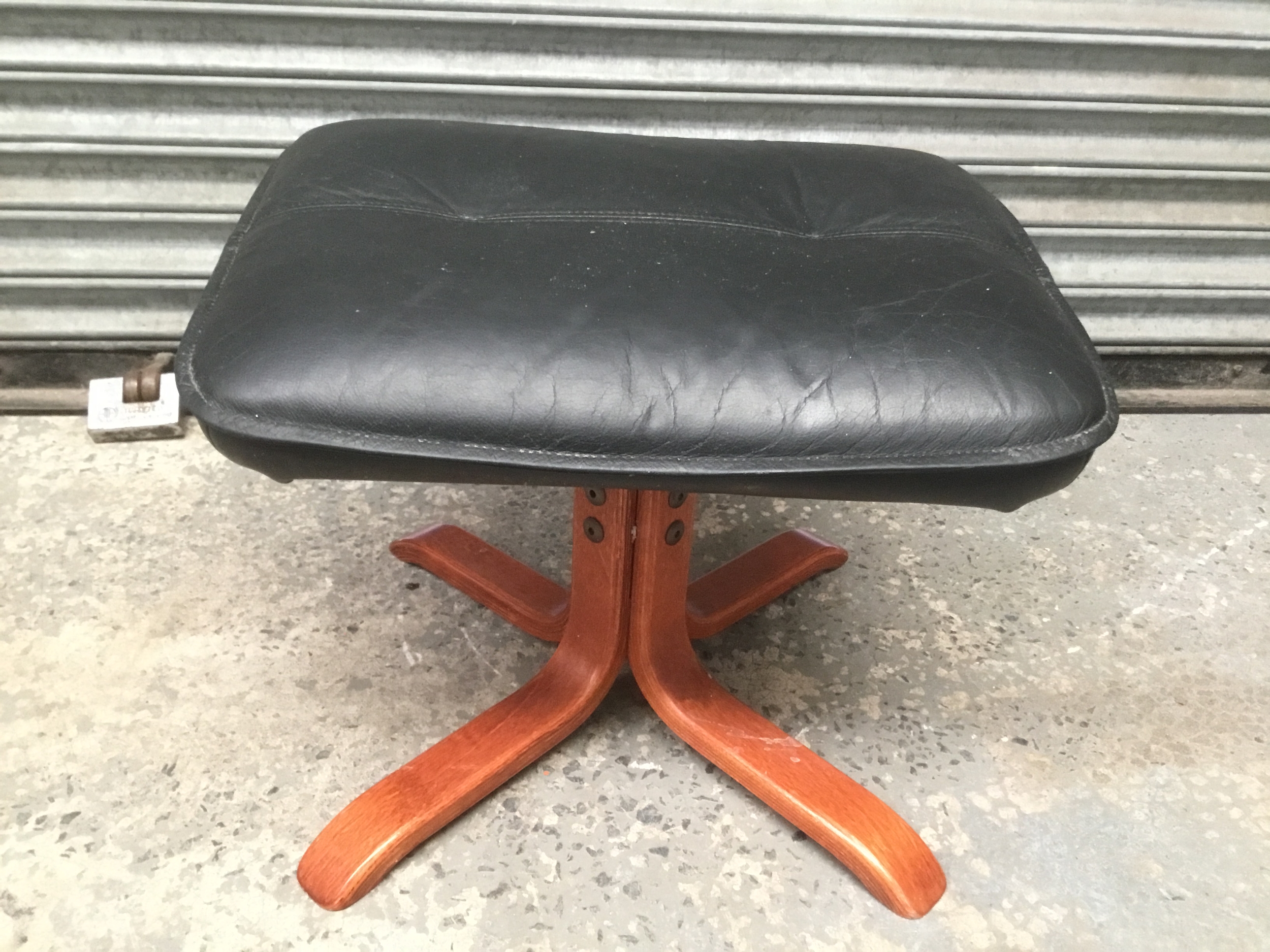 Leather topped footstool with four legged base