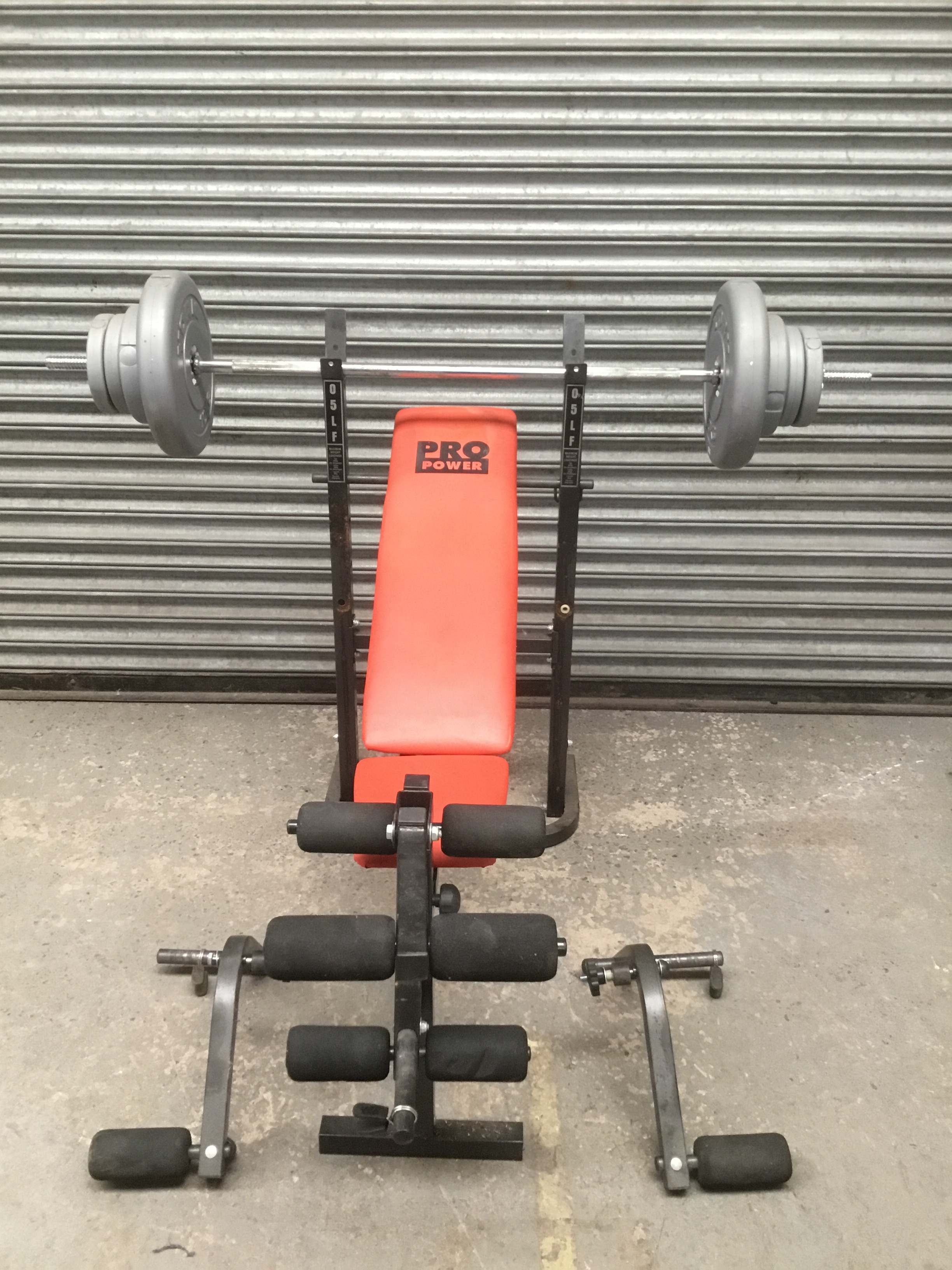 Pro Power weight bench with bar and a selection of weights