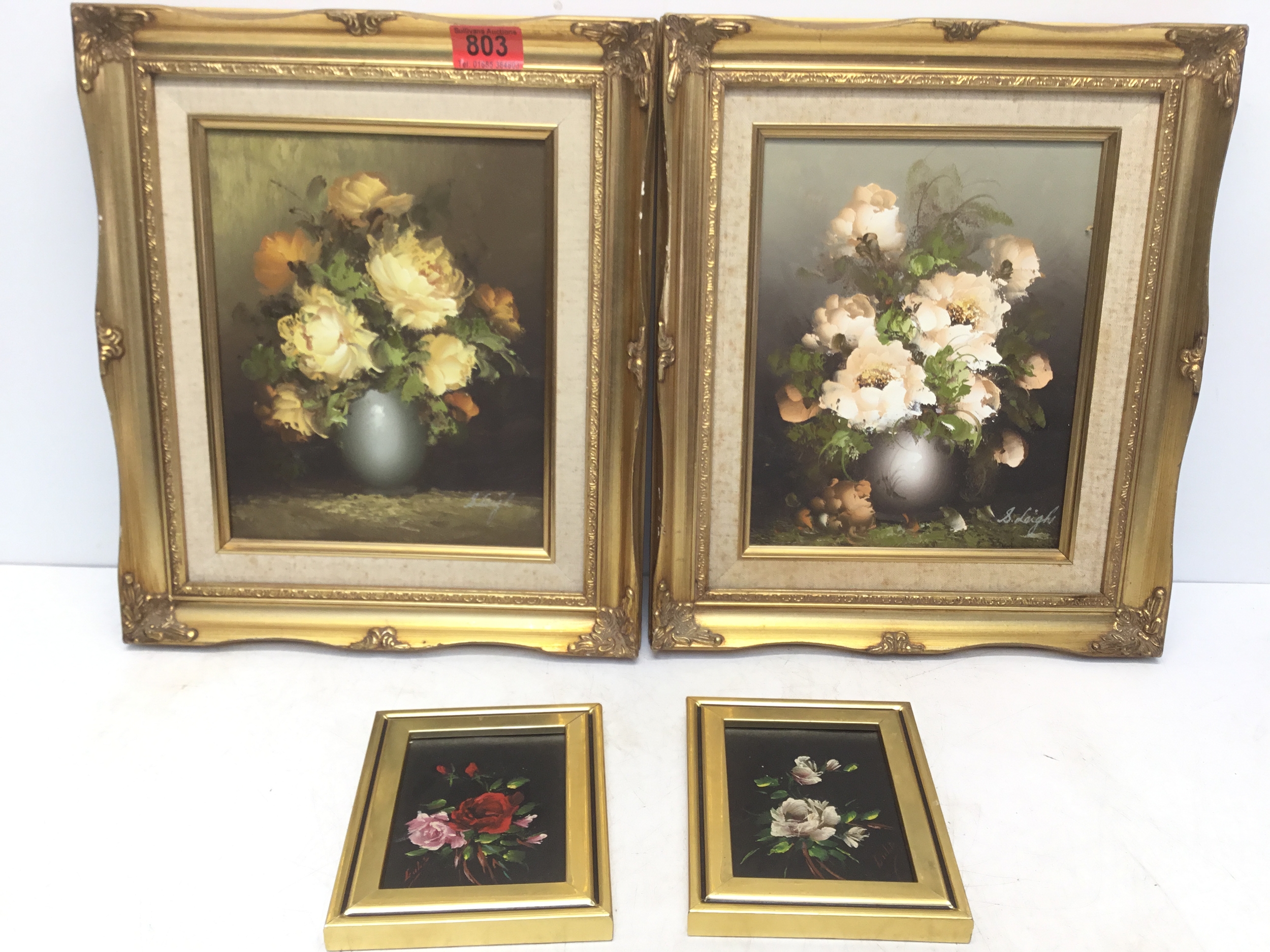 Two framed signed oil paintings by S Leigh 36cm x 36cm and two small oil on boards