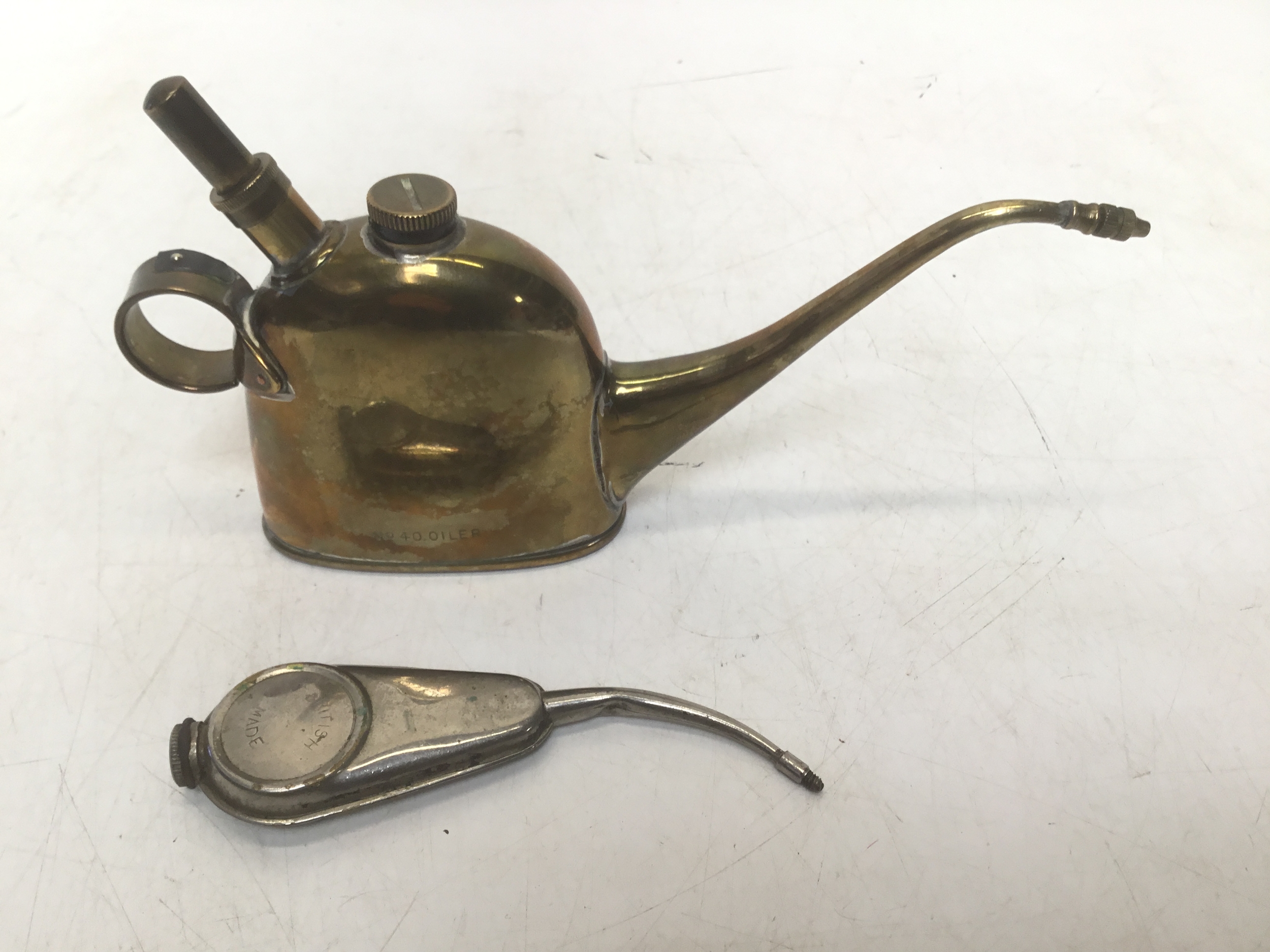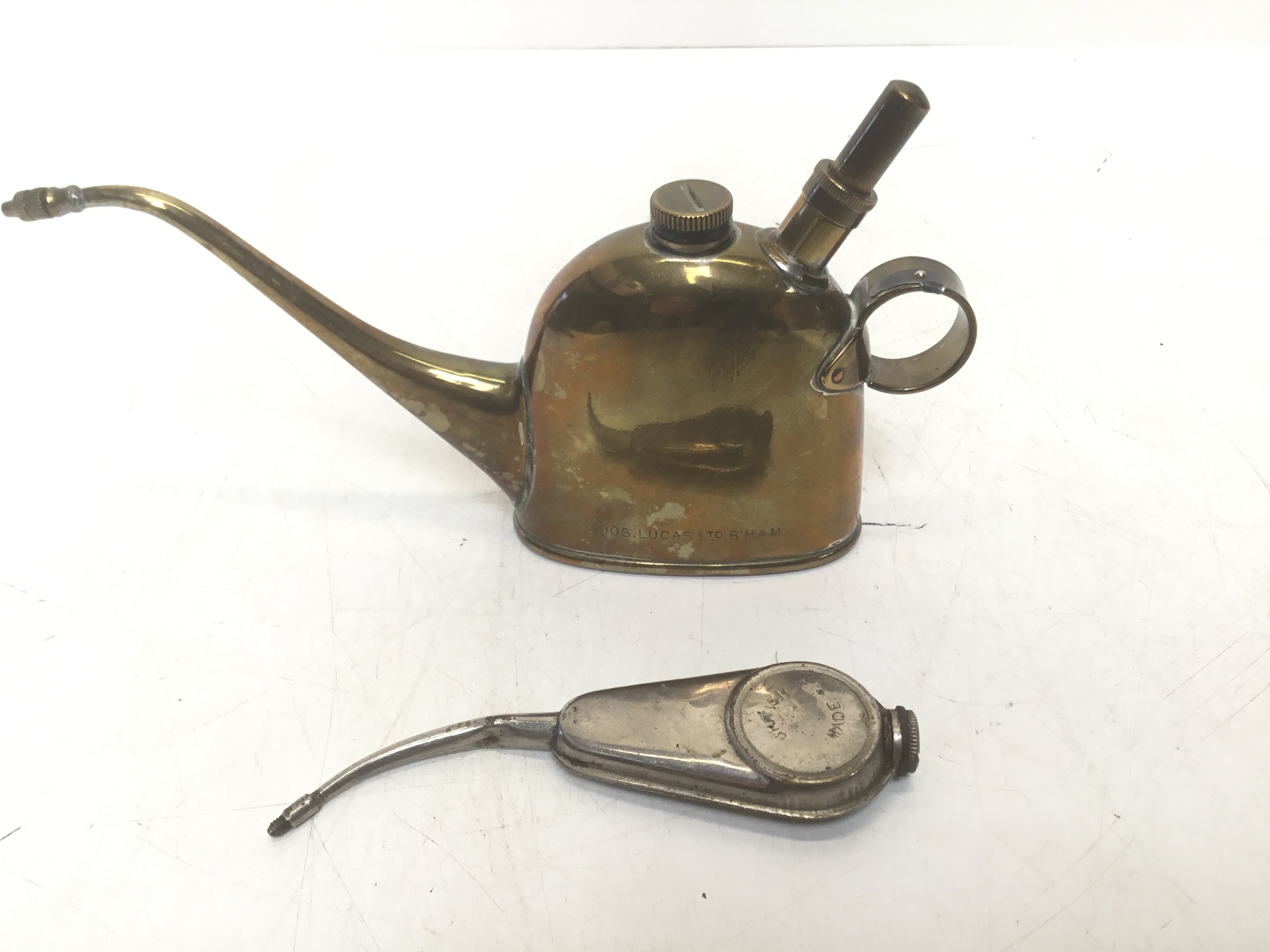 Two vintage British oilers including a Lucas No. 40 oiler in brass
