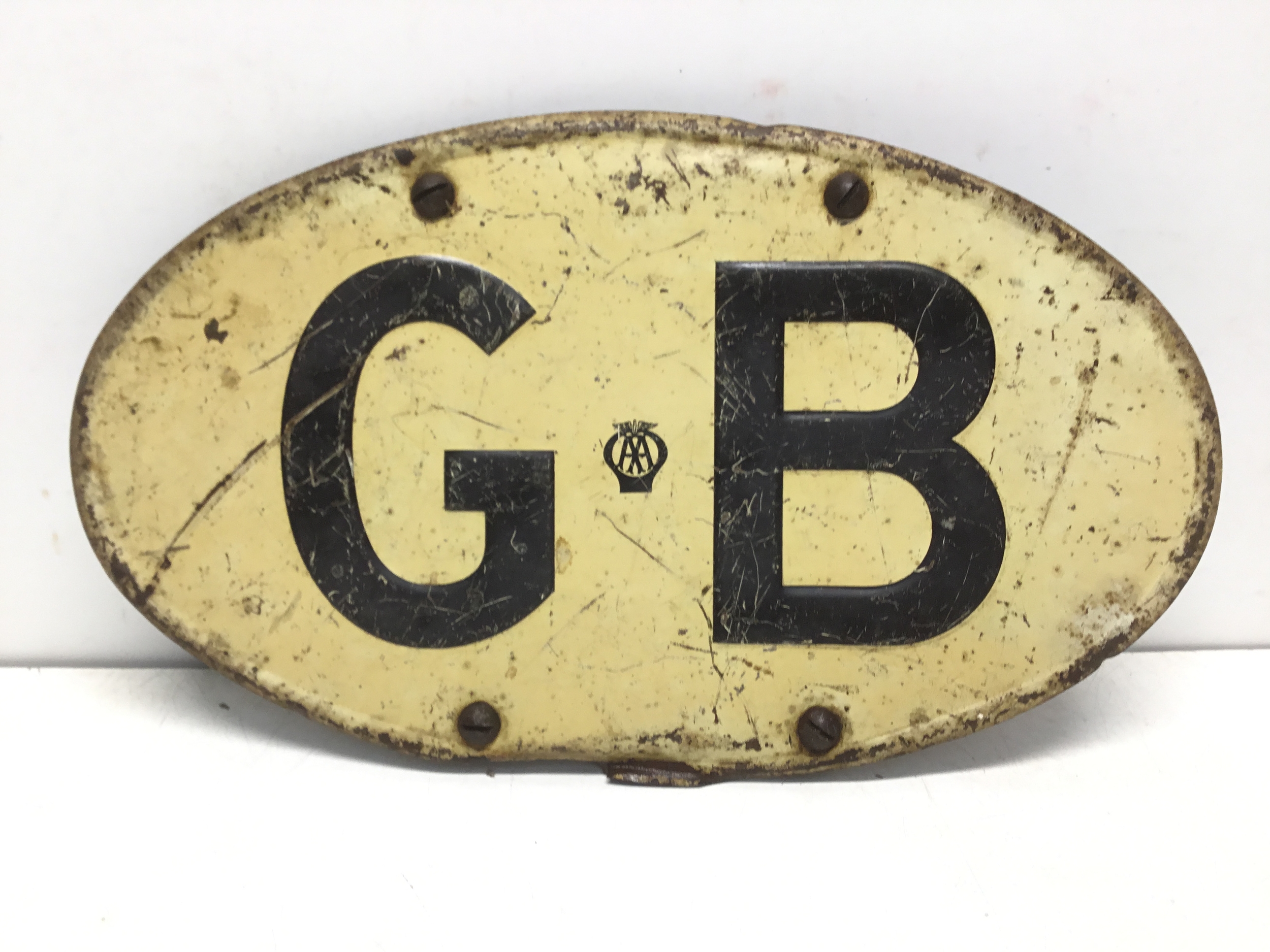 Vintage Automobile Association (AA) GB touring plate from the 1960s, featuring cast alloy construction with original enamel paint. 30cm x 18cm