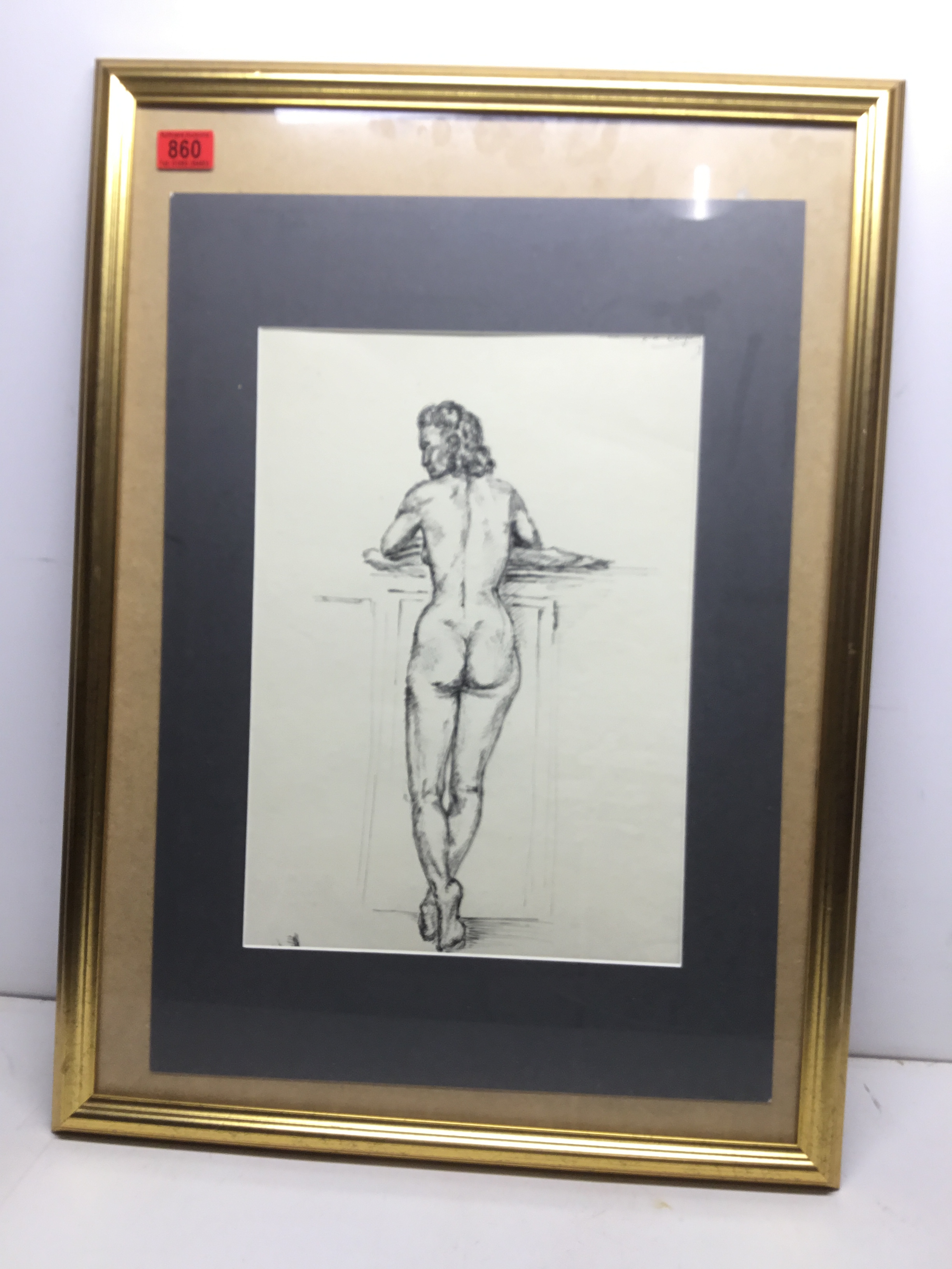 Framed pen and ink drawing signed J D Lloyd 1950 74cm x 54cm